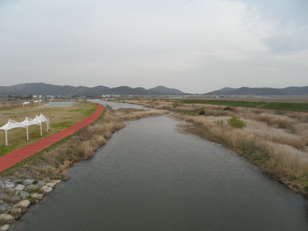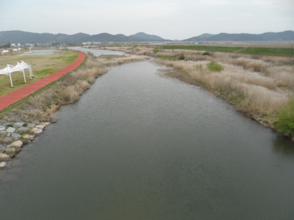 북천수에서 곡강천 뚝방을 따라 달립니다