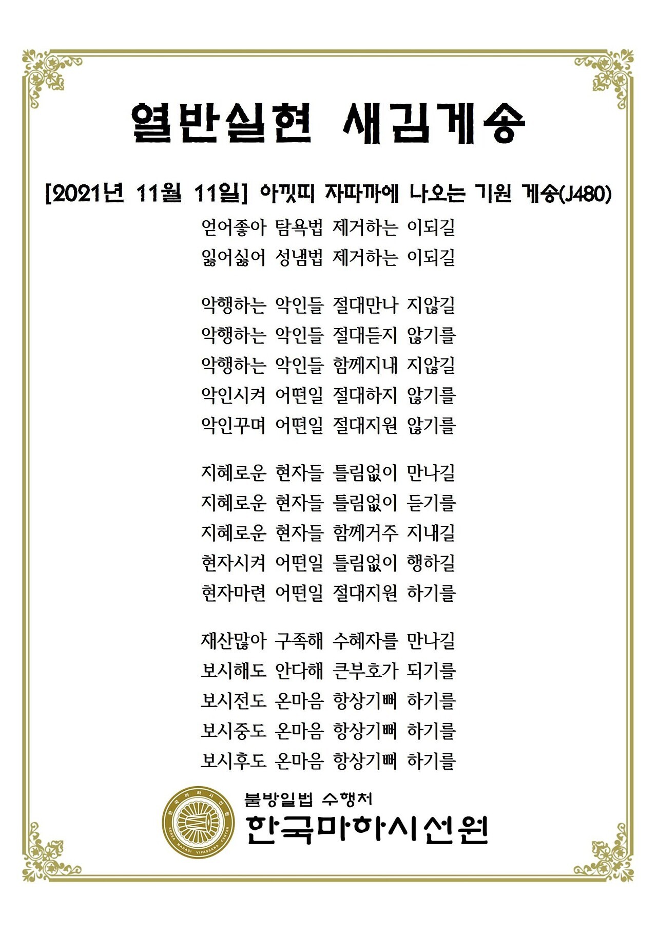 [출처] [2021년 11월 11일 목요수행 게송] 「아낏띠 자따까」에 나오는 기원 게송 (한국마하시선원) | 작성자 한국마하시선원