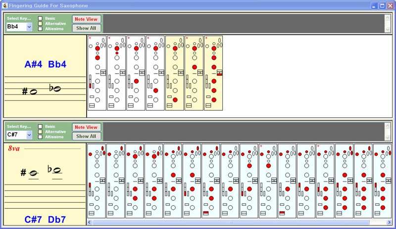 이 프로그램은 『Woodwind Fingering Guide』에 기초하여 카페지기인 제가 직접 제작한 프로그램으로 동시에 두 음에 대한 운지를 볼 수 있게 만든 것입니다. 빠른 운지 진행이 필요할 때 가장 손쉬운 전환 방법을 찾을 수 있도록 하였으나 유용하게 사용하시기 바랍니다. 물론 고음역대인 알티시모(Altissimo, 플레절렛이라고도 하지요.)의 운지도 다 나와 있습니다. 설치가 안되는 분들이 간혹 있을 수 있습니다. 이는 .NET Framework 1.0 이상의 버젼을 설치한 후에야 가능할 것입니다. 이것은 Window Update 사이트에서 다운받아 설치하시면 될 것입니다.