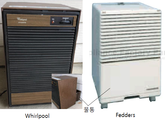 그래서 월풀 제습기를 하나 구입하여 사용자 입장에서 꼼꼼히 살펴보았다(제습기의 작동 원리 및 부품들의 기능 등을 배우고, 마케팅 측면에서 월풀 제습기에 있는 약점들을 찾아내기 위해서였다. 약점이 없으면 포기하려고 했다. 적을 알고 나를 알아야 이긴다고 하지 않던가.). 제습기는 거의 대부분 바닥에 놓게 되므로 전원 스위치나 제습 강도를 조정하는 스위치 같은 것은 모두 상부에 있어야 할 텐데 월풀 제습기의 스위치들은 사용자가 바닥에 쪼그리고 앉아야 제대로 볼 수 있었다. 제습기 전면에는 물 세척이 가능한 공기필터가 있고 하부에는 습기를 빨아들여 응축시킨 물이 고이는 물통이 있었다. 물통이 가득 차면 표시등이 켜져서 물통을 비워야 함을 알려주었다. 하지만 물통을 비우려면 벽체 가까이에 놓은 무거운 제습기를 앞으로 잡아당긴 뒤 그 후면에서 물통을 빼내야 하는데 제습기 본체에 바퀴가 달려있기는 하지만 물이 가득 담긴 물통을 빼내는 과정에서 물이 출렁거렸고 상당히 번거롭게 느껴졌다. 물통을 빼내는 곳이 제습기 전면에 있고, 응축된 물이 직접 건물 내 배수구로 나가도록 할 수 있는 호스 연결구가 뒷면에 있는 제품이 훨씬 더 좋아 보였다. 디자인도 월풀의 고전적 디자인보다는 모던한 디자인의 밝은 색상이 더 좋아 보였다. 제습 용량은 크기에 따라 달랐지만 회사별 차이는 별로 없었다. 그래서 선택한 것이 한국에서는 거의 알려지지 않았던 미국 페더스(Fedders)의 제품이었다.