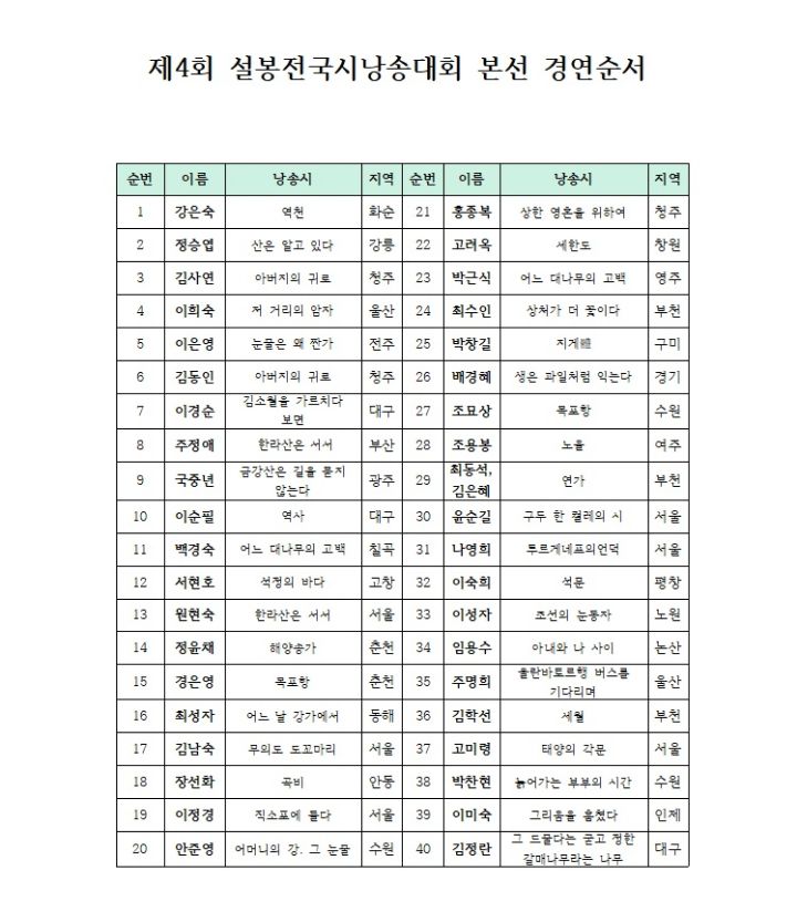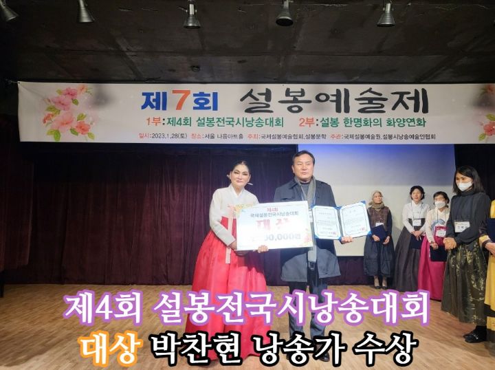 제4회 설봉전국시낭송대회 본선 경연 박찬현 낭송가 대상 수상 / 제4회 설봉전국시낭송대회 예선통과자 명단 및 본선경연 수상자 명단