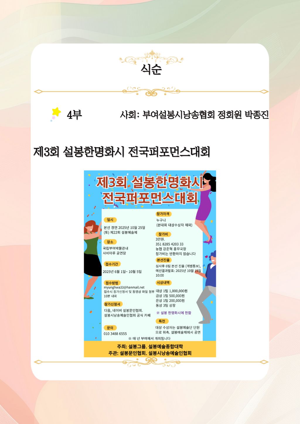 3부: 제3회 설봉문학 부소산전국시낭송대회 본선