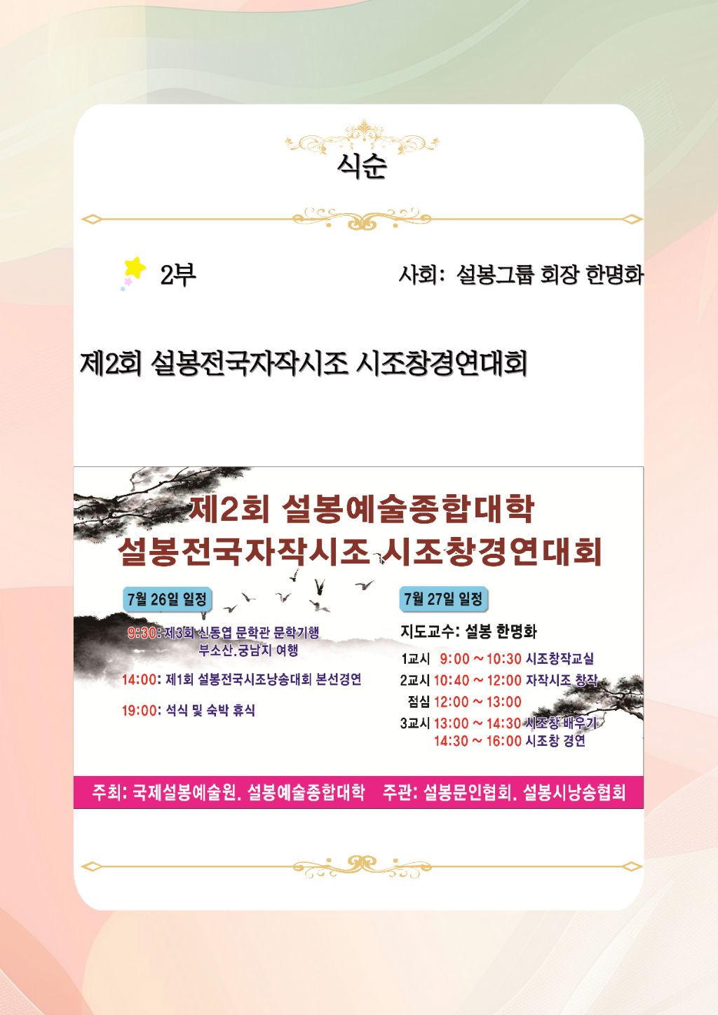 2부: 제2회 설봉전국자작시조 시조창경연대회 본선