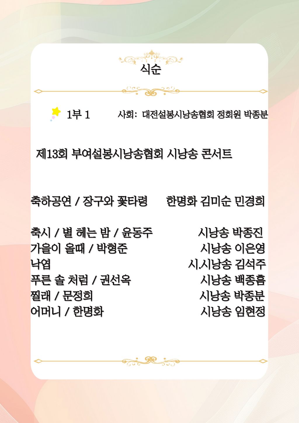 1부: 제13회 부여설봉시낭송협회 시낭송 콘서트