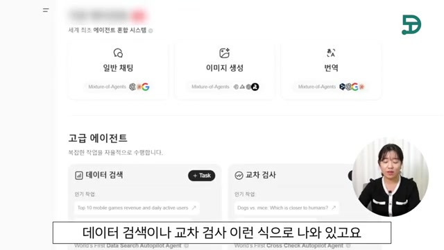 일반 채팅, 이미지 생성과 함께 번역 기능을 활용하여 에이전트 별 결과를 검토할 수 있다.[4-14]