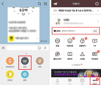 ▲'더보기'에서 KakaoPay 송금하기 메뉴를 찾아 터치!