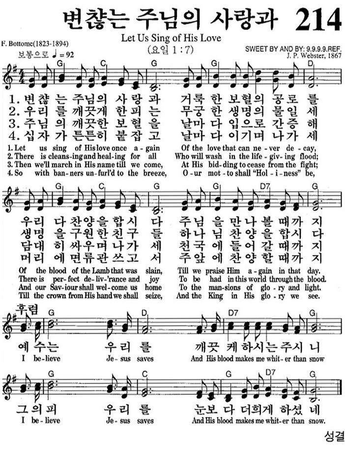 [스크랩] (♬在) (영어 찬송) 214장, 변찮는 주님의 사랑과, Let us Sing of His Love (♬在)