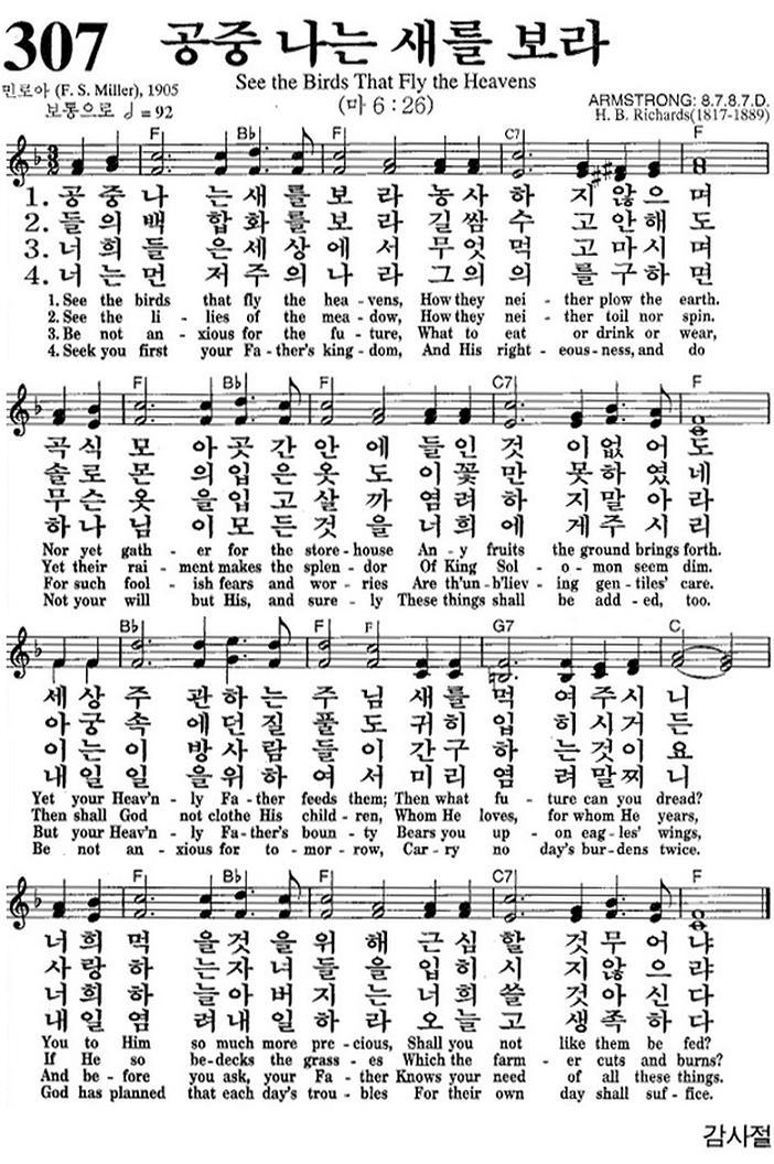[스크랩] (영어 찬송) 307장, 공중에 나는 새를 보라, See the Birds That Fly the Heavens