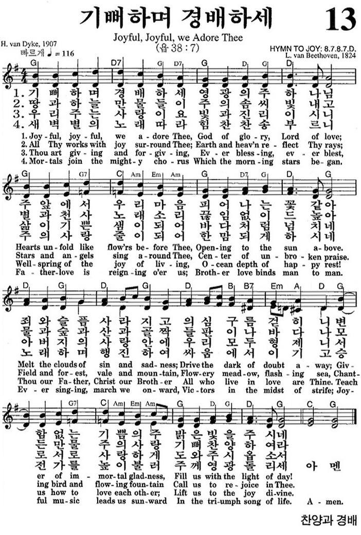 [스크랩] (♬在) (영어 찬송) 13장, 기뻐하며 경배하세, Joyful Joyful, we Adore Thee (♬在)