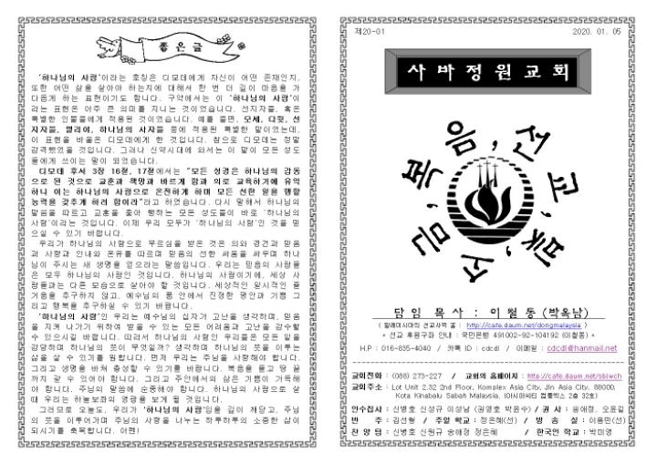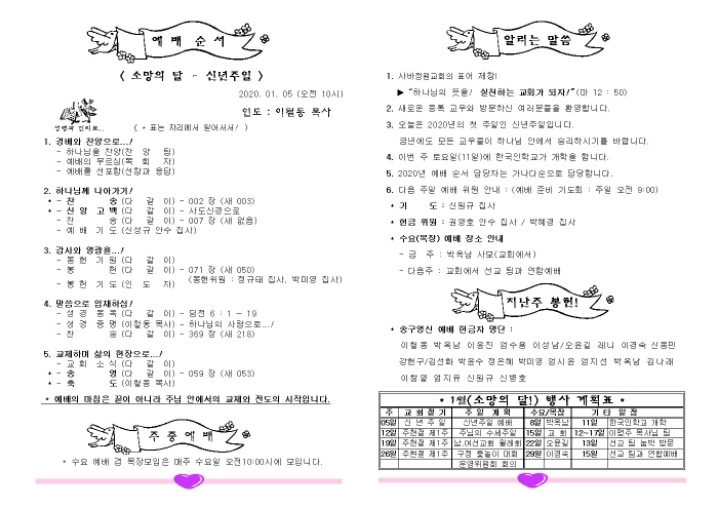 2020년 1월 5일 - 주보 작성자kk_grace|작성시간20.01.04|조회수122 목록 댓글 0 글자크기 작게가 글자크기 크게가 샬롬~~^^2020년 새해가 밝았습니다~~다 함께 신년주일예배로 하나님께 영광 올려드리기를 소망합니다~~ 다음검색 현재 게시글 추가 기능 열기 북마크 공유하기 신고 센터로 신고 댓글 댓글 0 댓글쓰기 답글쓰기 댓글 리스트