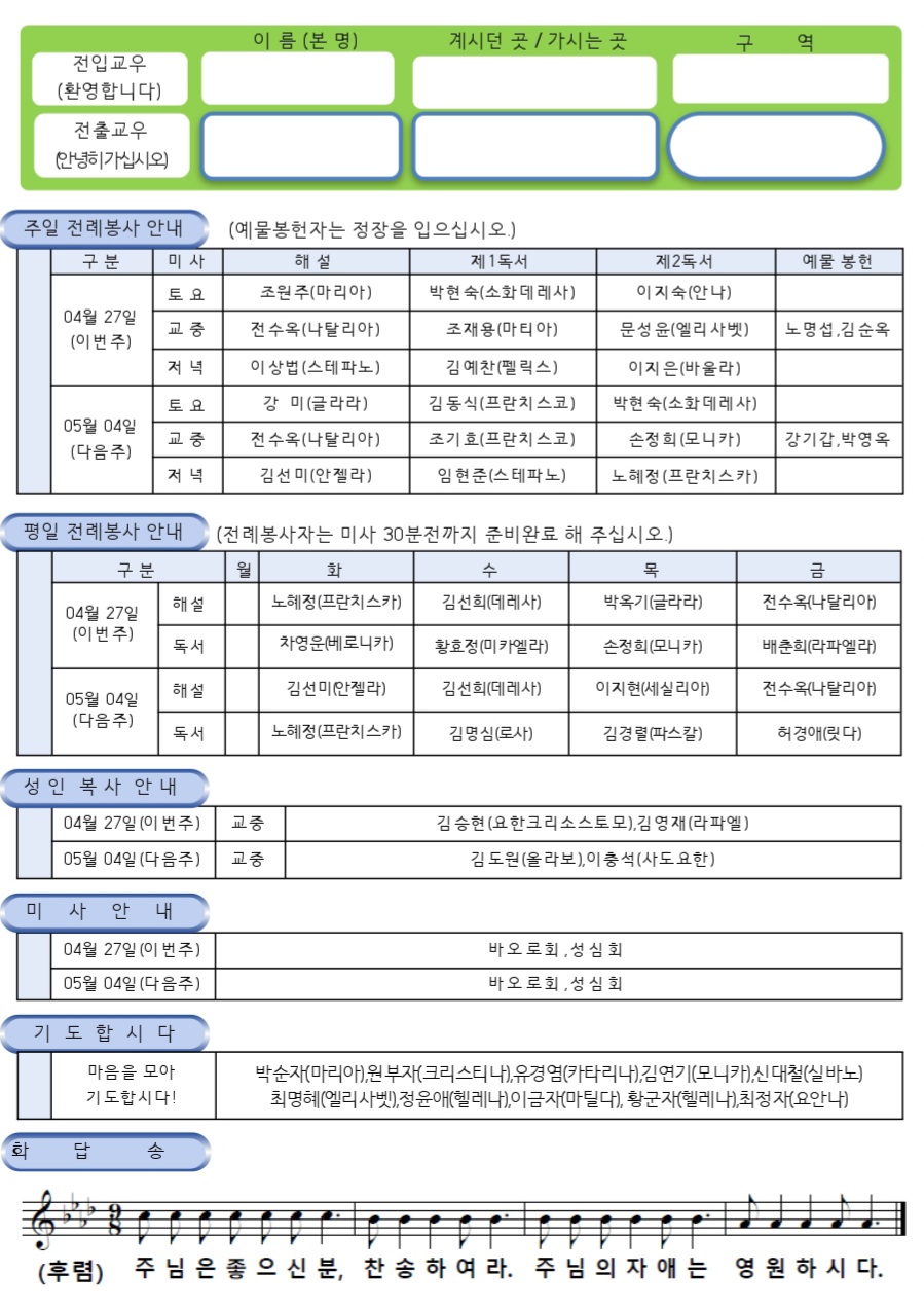 부활 제2주일 본당알림 작성자카페지기|작성시간25.04.26|조회수195 목록 댓글 0 글자크기 작게가 글자크기 크게가 부활 제2주일 본당알림부활 제2주일 교구 주보http://cathms.kr/C_8/22604 다음검색 현재 게시글 추가 기능 열기 북마크 신고 센터로 신고 댓글 댓글 0 댓글쓰기 답글쓰기 댓글 리스트