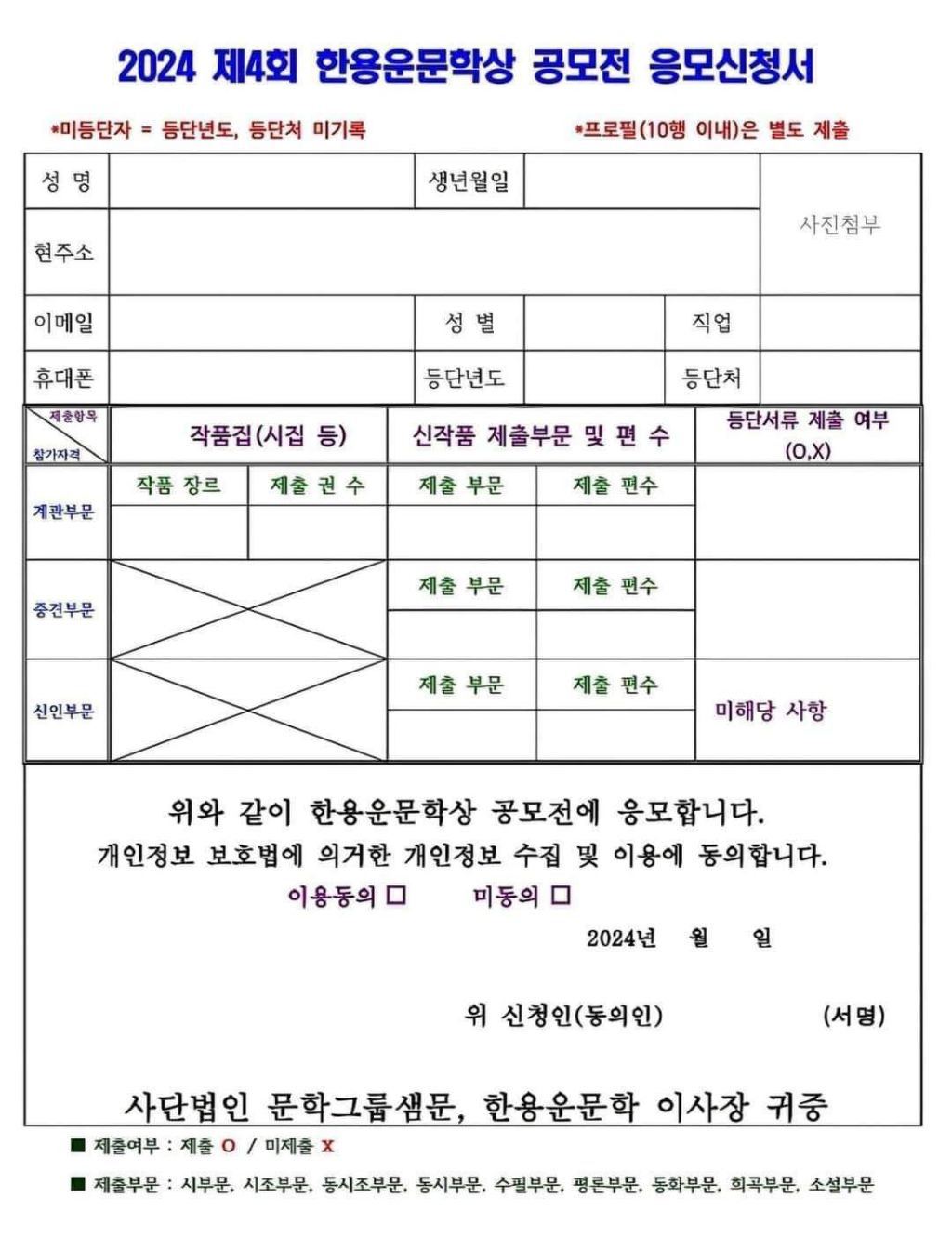 ■2024 한용운문학상 공모전 시행공고■총상금 1.000만원 - 서울특별시, 중랑구, 샘문그룹 후원 공모전 - 이사장 이정록