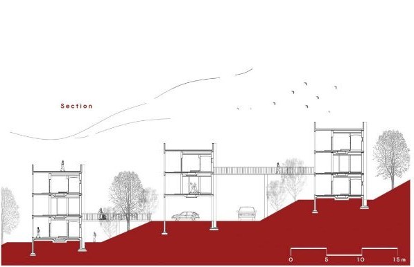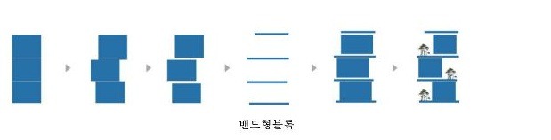 저층집합주거의 모습으로 안창마을을 가꾸기 위해서는 이곳의 지형분석을 토대로 기존의 개별단위의 조합이 아닌 등고선의 수평을 이루는 밴드형타입을 제안한다.