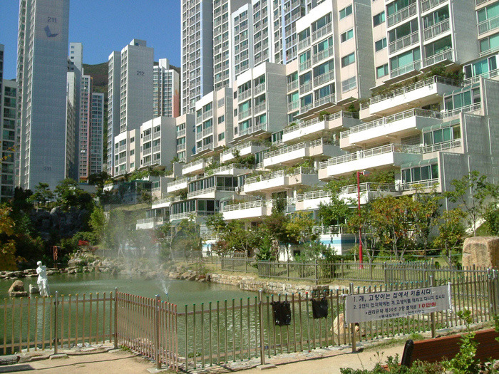 인공호수주변에는 남사면의 경사지형을 살려 테라스하우스를 하우스를 배치하고 있으며, 테라스 하우스의 최상단에는 중층주동을 조합시켜 호수변의 경관을 극대화시키고 있다. 또한 2단지의 중심보행로변에도 테라스 주택을 배치하여 다양한 보행경관을 형성하고 있다.