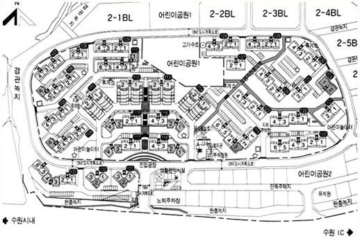 단지구성이 13년 된 아파트임에도 불구하고 굉장히 잘 되어있었고 계획이 잘 되어 있다는 느낌을 받았다.