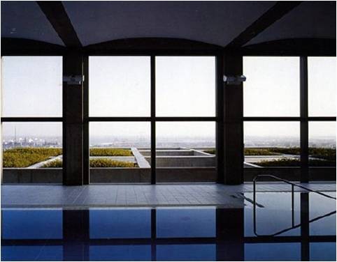 ▶ 공용시설로 바다가 보이는 옥내 풀장은 건물의 중간에 설치한 옥상광장의 상부에