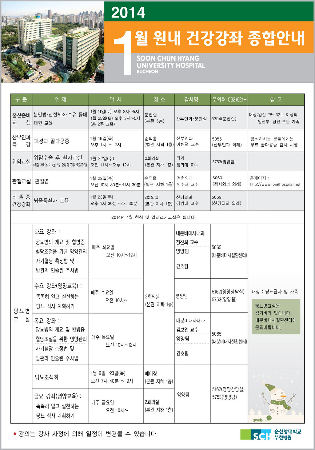 2014년 1월 원내강좌 작성자노윤주|작성시간14.01.08|조회수26 목록 댓글 0 글자크기 작게가 글자크기 크게가 다음검색 현재 게시글 추가 기능 열기 북마크 공유하기 신고 센터로 신고 댓글 댓글 0 댓글쓰기 답글쓰기 댓글 리스트