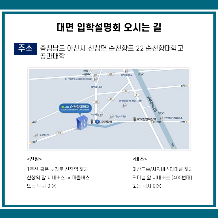 4. 대면 입학설명회 장소: 순천향대학교 공학관 1층 9142호