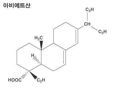 송진을 증류하여 얻는 천연 수지로 아비에트산를 주성분으로, 네오아비에트산·레포피마르산·하이드로아비에트산·피마르산·덱스톤산 등 수지산(樹脂酸)을 함유한다. 종이의 사이즈제(劑), 비누·도료·합성수지의 첨가제 등으로 쓰인다.