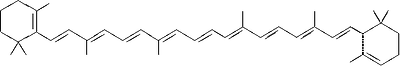 카로틴(carotene)은 탄소 고분자 물질로서 탄소 원자 사이에 단일 결합과 이중 결합이 번갈아 나타나는 생체 물질이다. 생체 내에는 주로 베타 카로틴이 존재하며, 베타 카로틴은 비타민A의 전구 물질로서 베타 카로틴 한 분자가 생체 내에서 필요에 따라 비타민A 두 분자로 변한다. 카로틴 양쪽 끝 모양에 따라 α,β,γ,δ,ε,ζ-카로틴으로 불린다. 단일 결합과 이중 결합은 복합 결합하여 복합 결합 구조(conjugated bonding structure)를 갖는다. 즉, 실제로는 단일 결합과 이중 결합이 번갈아가면서 존재하는 것이 아니라 나란한 파이 결합들이 기다란 복합 결합을 갖는 구조를 갖는다. 분광학적으로는 푸른 빛(blue)을 흡수하고 붉은 빛을 반사하므로 황색 빛을 띤다. 베타 카로틴의 경우, 당근과 같은 채소나 살구와 같은 과일류에 많이 포함되어 있다. 이성질체로 리코펜(lycopene)이 있는데, 리코펜의 경우 카로틴 보다 더욱 붉은색을 띄며, 토마토에 많이 함유되어 있다.