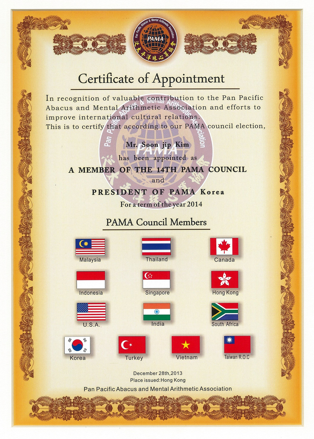 주산수리셈 대표이사 / PAMA Korea 회장