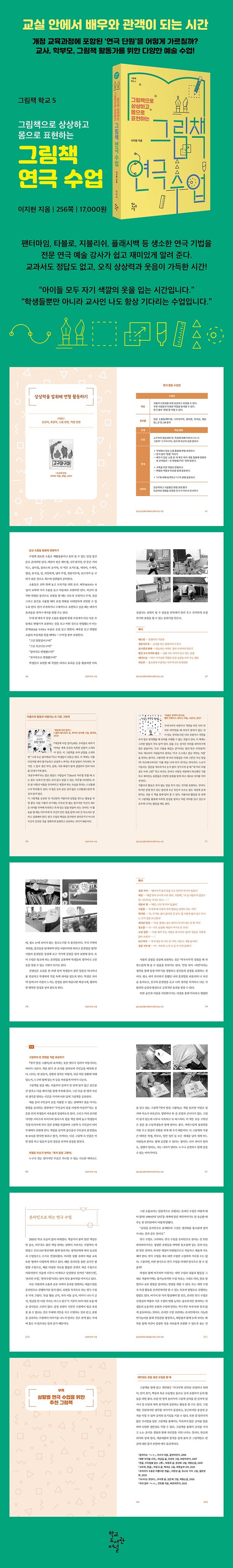 『그림책 연극 수업』은 연극 수업을 위한 기본적인 약속과 연극의 요소를 알려주고, 학생들의 흥미를 끄는 그림책과 연극 기법을 연계해 수업에서 바로 적용해 볼 수 있는 수업안을 제시하고 있다. 또한 수업 과정을 볼 수 있는 활동사진, 또 다른 활동 그림책과 상황별 추천 그림책까지 활용도 높게 구성되어 있다.