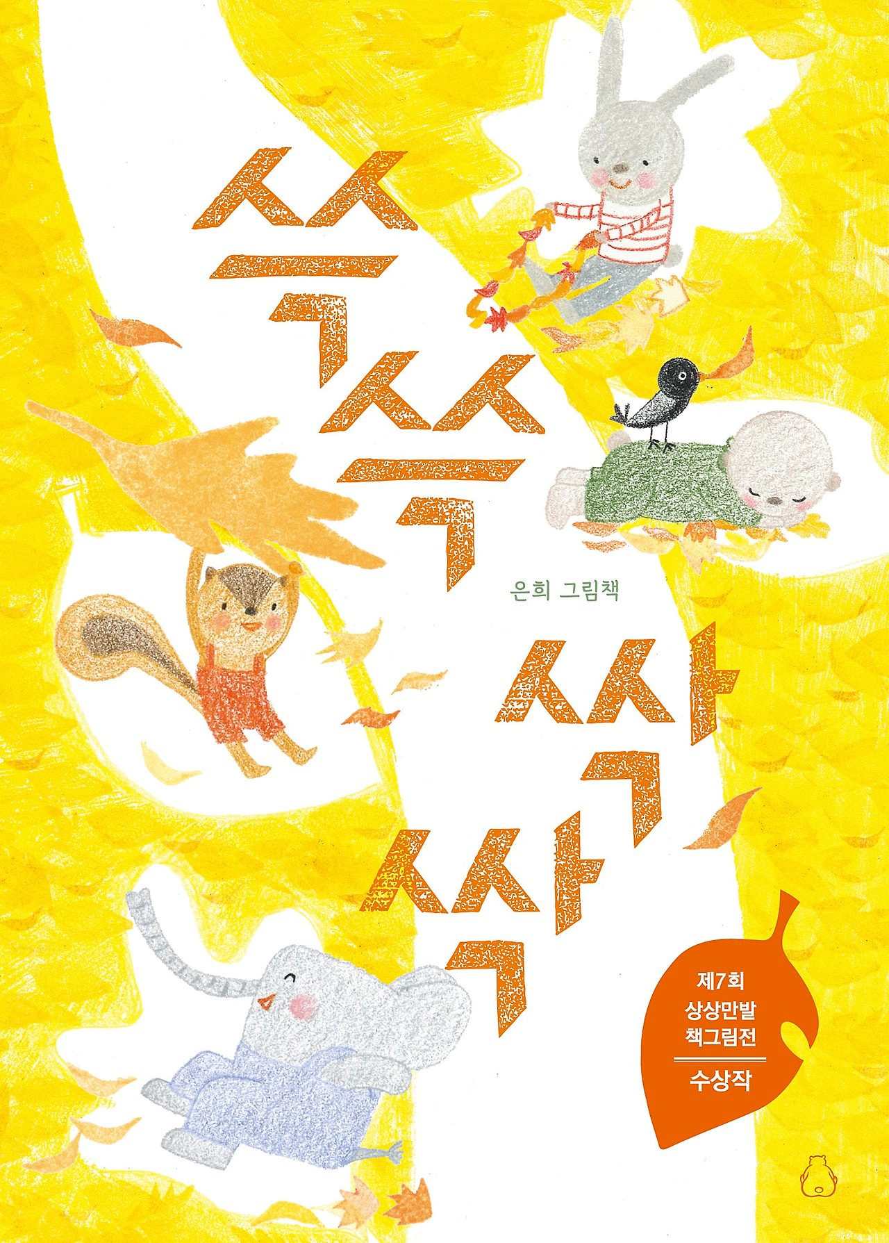 “늦가을 화창한 날씨가 예상됩니다.” 라디오에서 흘러나오는 일기 예보를 들으며 그림책이 시작됩니다. 한 장 한 장 넘길 때마다 동물 친구들의 발밑에서 “바스락바스락” 낙엽이 부서지는 소리가 들립니다. 또 한 장을 넘기면 “쓱쓱 싹싹 쓱쓱 싹싹” 낙엽을 쓸어 모으는 소리가 점점 커집니다. 코끼리가 “에취!” 하고 재채기를 합니다. 모두가 단잠에 빠진 밤에는 동물 친구들이 “쿨쿨” 코를 곱니다. “내일은 기온이 뚝 떨어져 첫눈이 내릴 예정입니다.”라는 라디오 소리를 들으며 마무리됩니다. 이 그림책은 라디오 소리, 낙엽 소리, 빗자루로 낙엽을 쓰는 소리, 동물 친구들이 노는 소리로 가득합니다. 곱디고운 노란빛이 가득한 편안하고 아름다운 그림과 함께 자연에서, 일상에서 나는 소박하고 듣기 좋은 소리를 따라가는 신나는 그림책입니다.