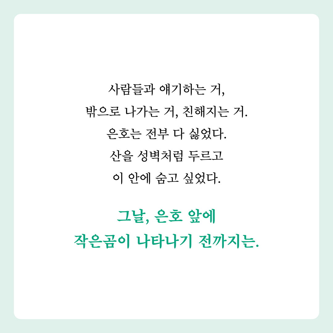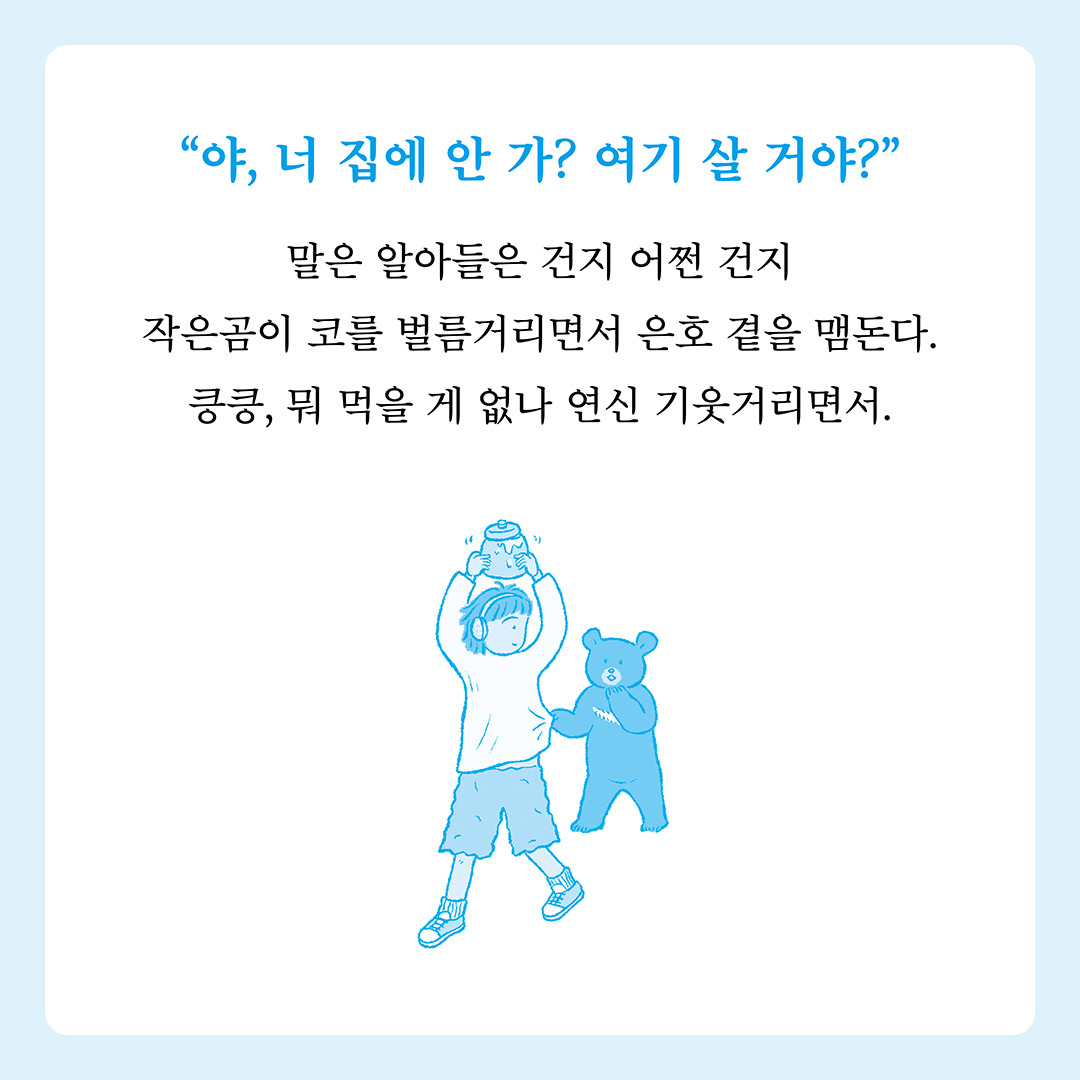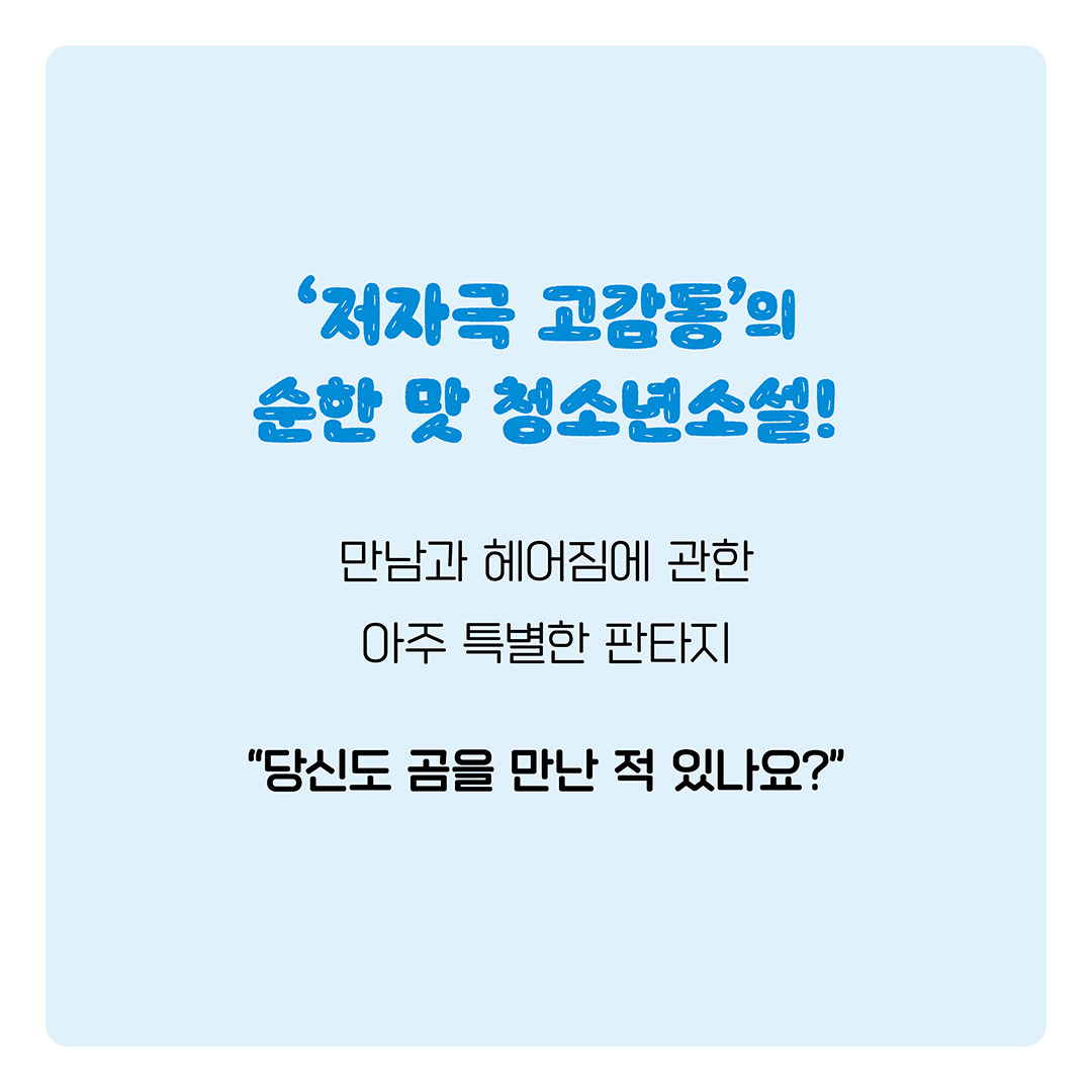 <곰 한 마리가 숲속에 있어> 카드뉴스 작성자책폴 출판사|작성시간25.09.12|조회수10 목록 댓글 0 글자크기 작게가 글자크기 크게가 책폴 청소년문학 저스트YA 12『곰 한 마리가 숲속에 있어』 김영리 장편소설 |책폴 | 14,000원 다음검색 현재 게시글 추가 기능 열기 북마크 신고 센터로 신고 댓글 댓글 0 댓글쓰기 답글쓰기 댓글 리스트
