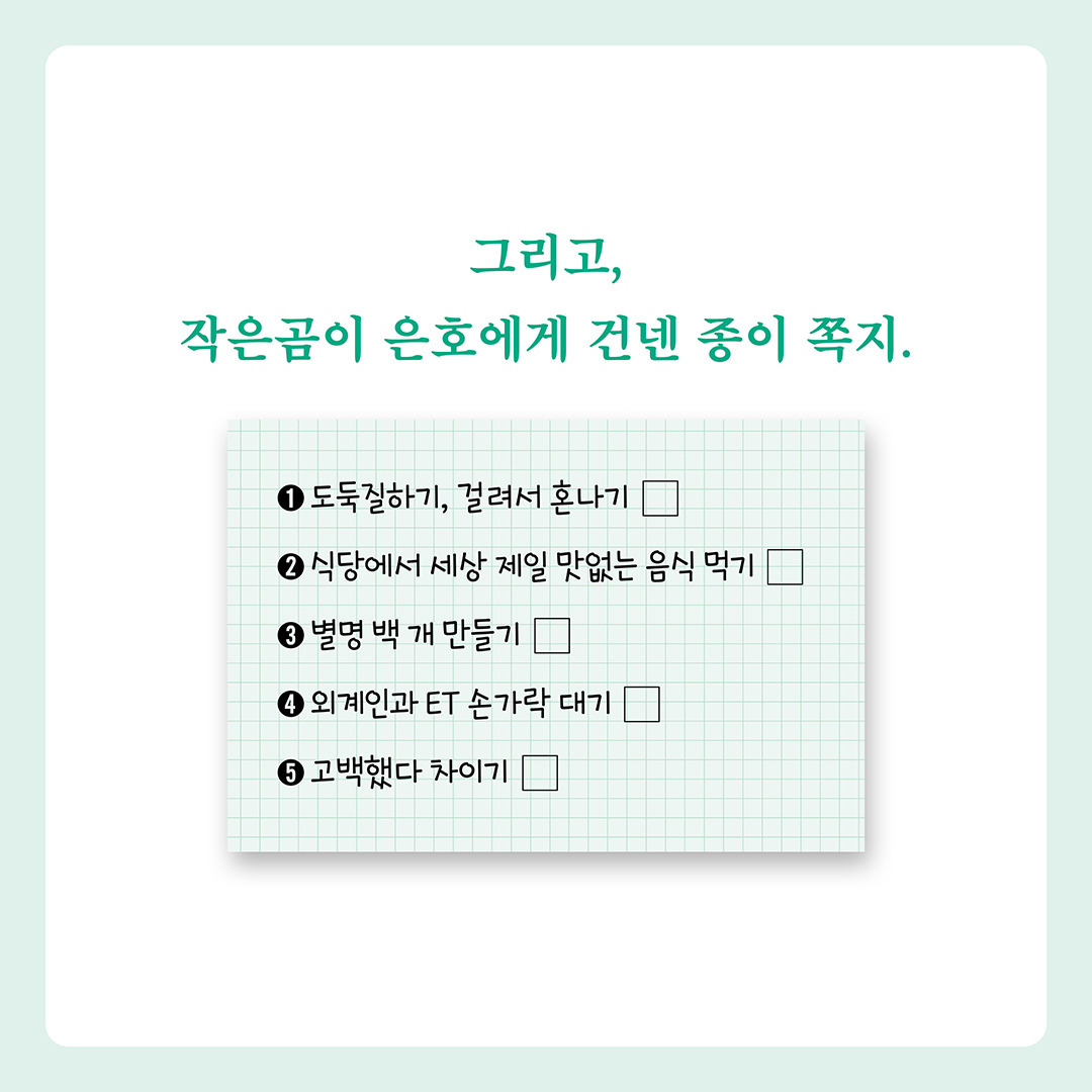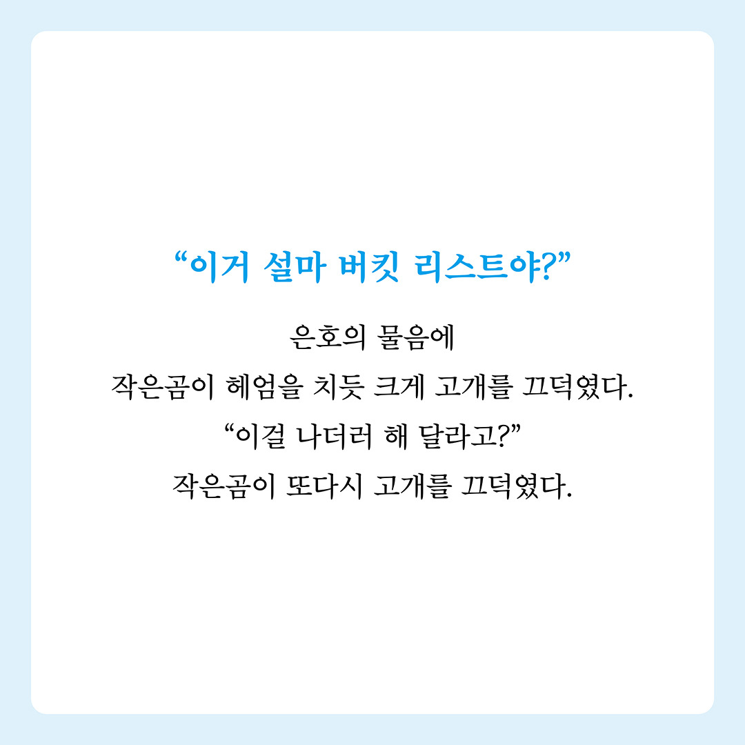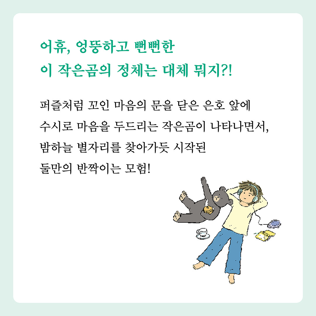 <곰 한 마리가 숲속에 있어> 카드뉴스 작성자책폴 출판사|작성시간25.09.12|조회수10 목록 댓글 0 글자크기 작게가 글자크기 크게가 책폴 청소년문학 저스트YA 12『곰 한 마리가 숲속에 있어』 김영리 장편소설 |책폴 | 14,000원 다음검색 현재 게시글 추가 기능 열기 북마크 신고 센터로 신고 댓글 댓글 0 댓글쓰기 답글쓰기 댓글 리스트