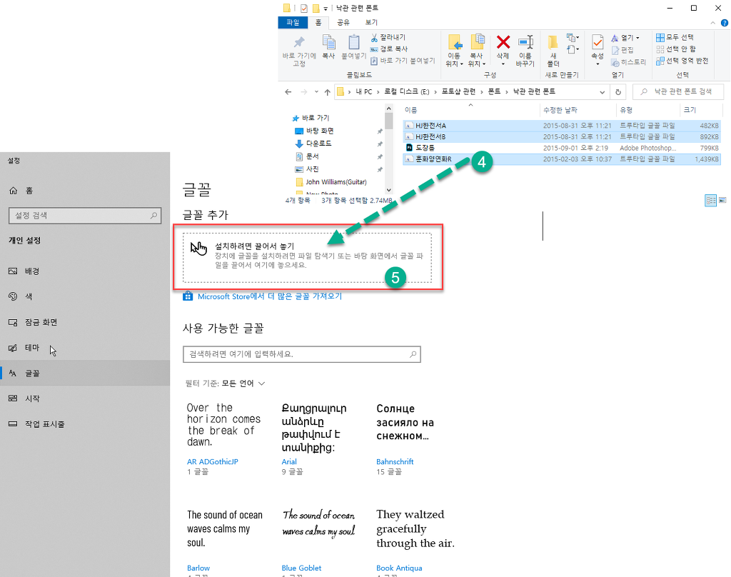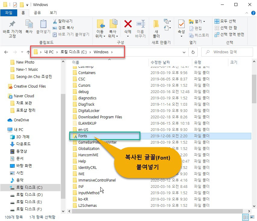 => 파일 탐색기: C 드라이브> Windows> Fonts => 붙여넣기
