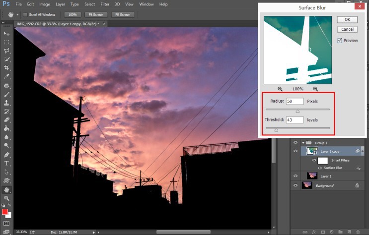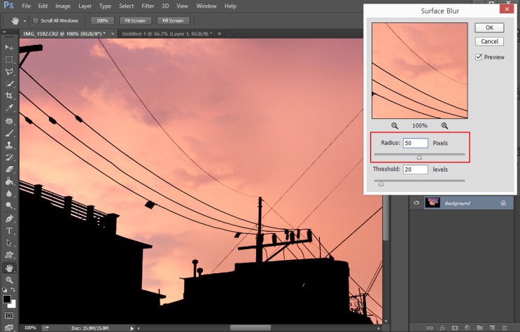 포토샵 필터 Blur > Surface Blur 필터