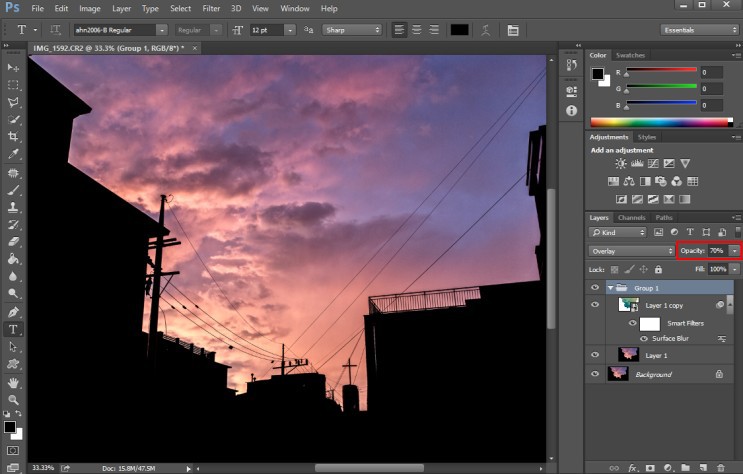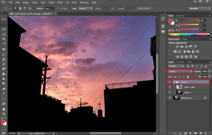 2-4 그룹의 블렌드 모드를 Overlay 로 설정 합니다.