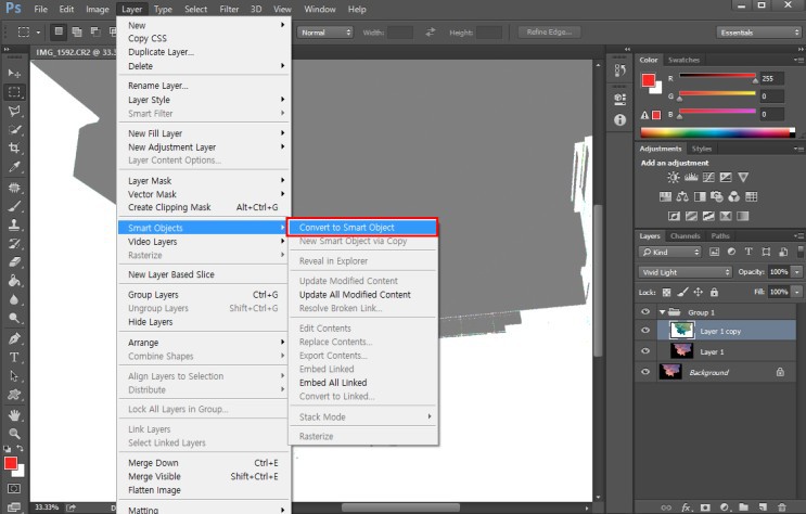 2-3 색상 반전된 레이어를 스마트 오브젝트로 변환합니다.