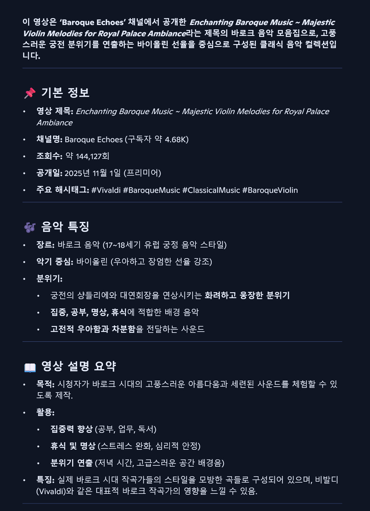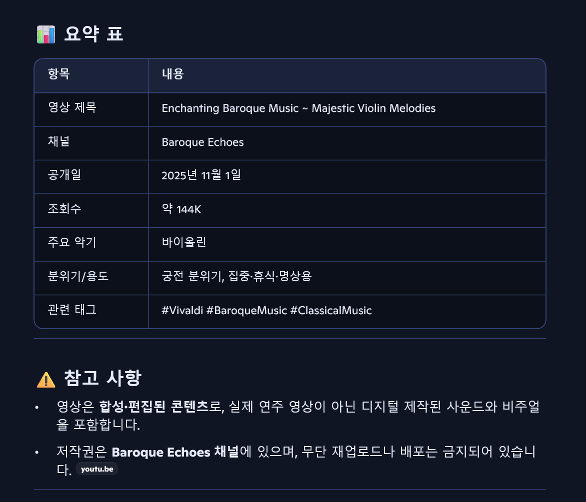 고풍스러운 궁전 분위기를 연출하는 바이올린 선율