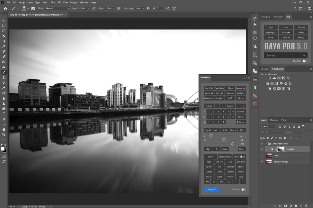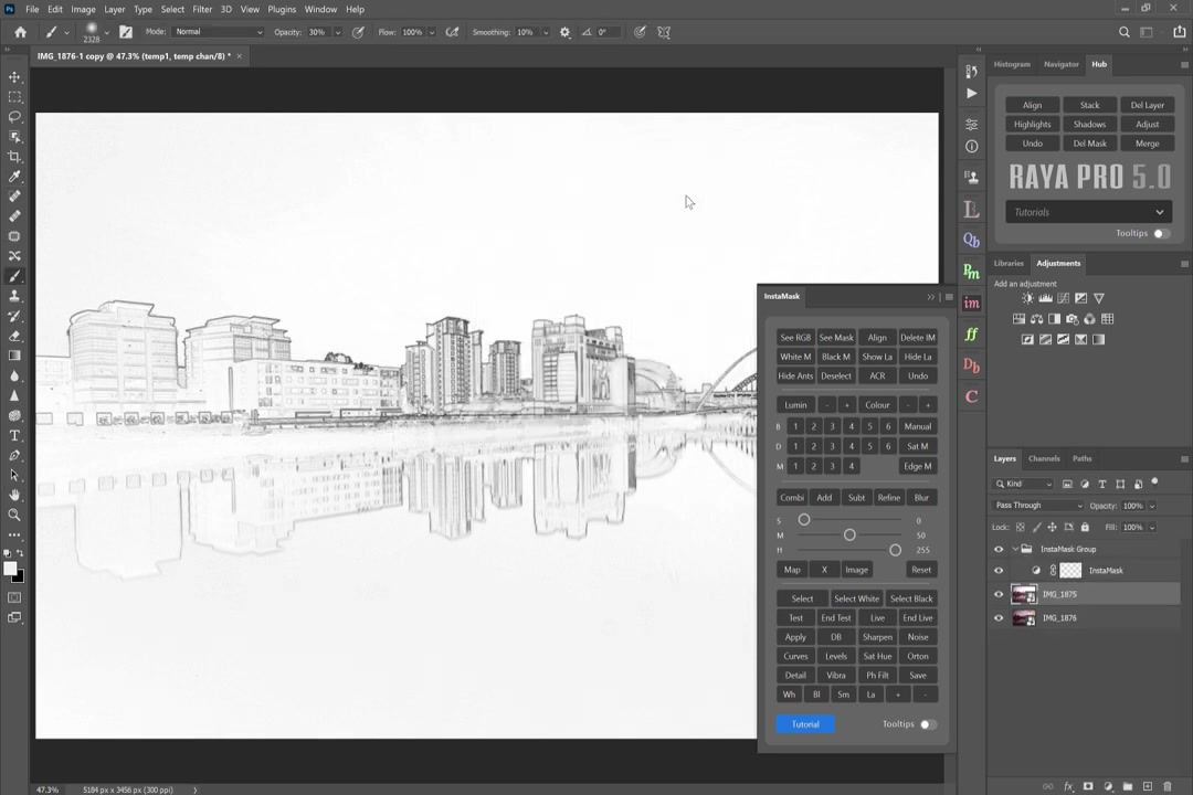 InstaMask는 Raya Pro의 광도 마스크 패널로, 이미지의 밝기 영역을 선택하여 노출 블렌딩 및 다양한 보정 작업에 활용하는 도구입니다.