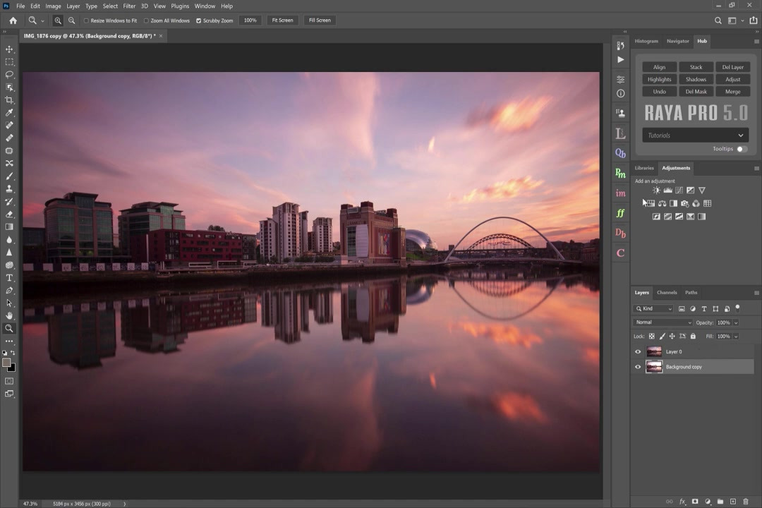- ACR 접근: Raya Pro에서 Adobe Camera Raw 버튼을 누르면 해당 이미지를 ACR에서 편집할 수 있다.