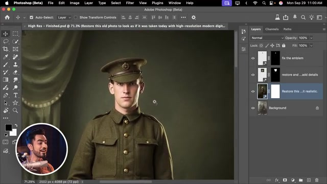 - 전체 이미지를 선택하고 '이 사진을 복원하고 선명하게 하며 디테일을 추가하라'와 같은 프롬프트를 사용하여 놀라운 복원 결과물을 얻을 수 있다.