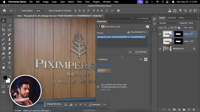- 텍스트 변경: 간판의 텍스트(예: Four Seasons를 Pixer로)를 변경하는 경우 Gemini는 오타를 내거나 위치를 틀었지만, Flux는 첫 시도에 글꼴, 금속성 마감까지 완벽하게 유지하며 정확하게 변경했다.