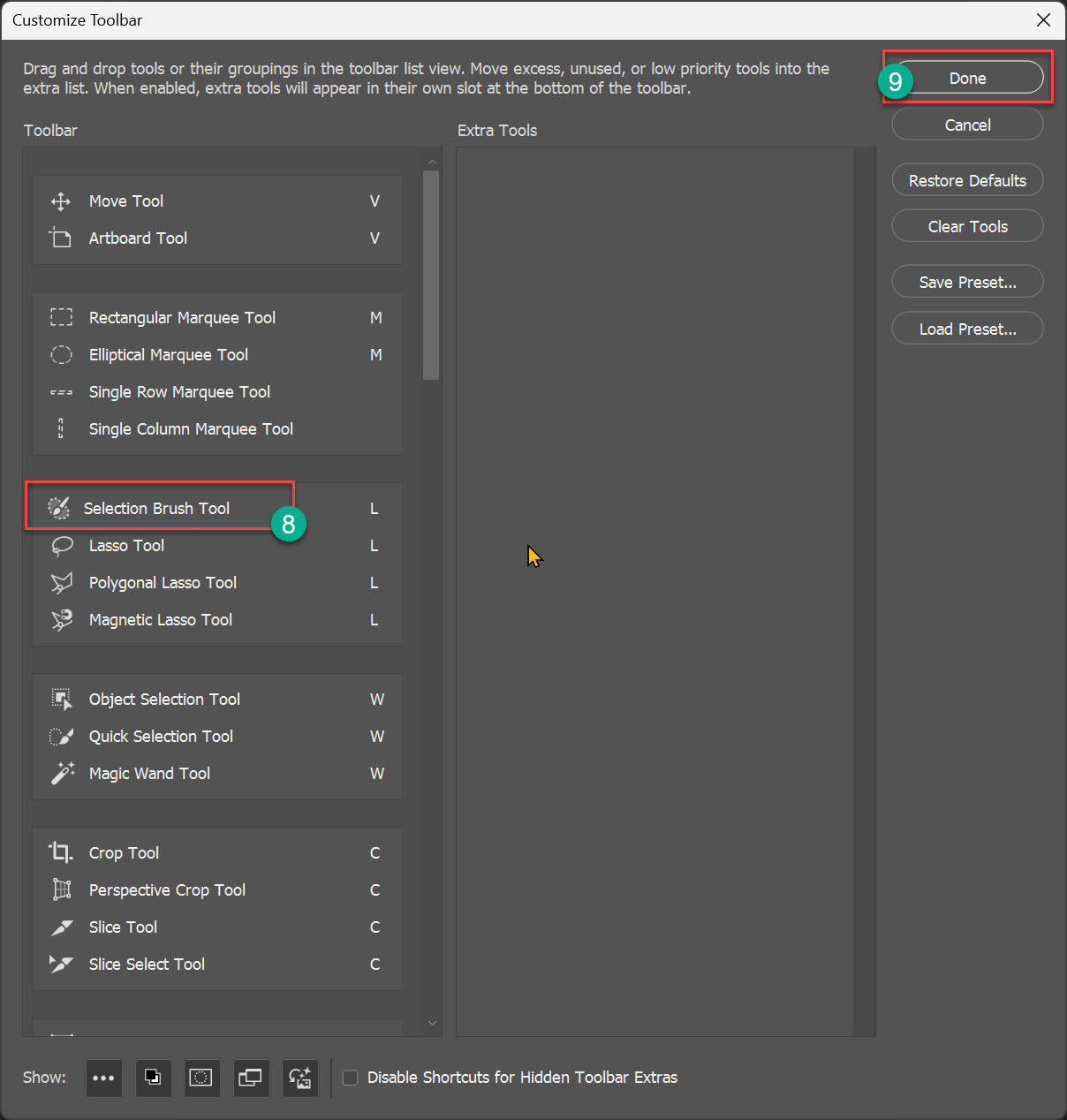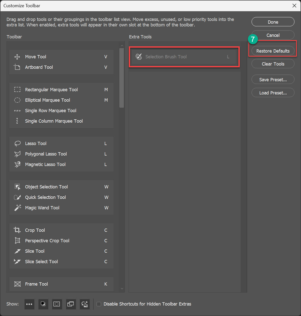 Photoshop Tool Bar (도구 바) 초기화 작성자손오공/여운경|작성시간24.07.30|조회수281 목록 댓글 0 글자크기 작게가 글자크기 크게가 Photoshop Tool Bar (도구 바) 초기화Toola Bar(도구 바)에서 없어진 것이 있거나 업데이트 후에도 도구가 나타나지 않는 경우 아래 방법대로 툴바 초기화 작업을 진행한다. 다음검색 현재 게시글 추가 기능 열기 북마크 공유하기 신고 센터로 신고 댓글 댓글 0 댓글쓰기 답글쓰기 댓글 리스트