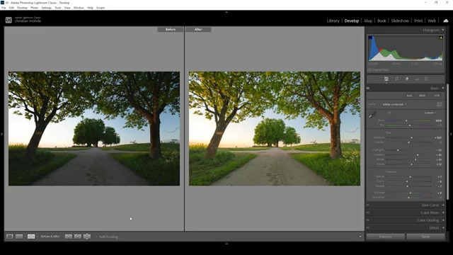 1. 🌅 라이트룸의 기본 조정 과정- 라이트룸에서 기본 패널을 확장하고, Adobe landscape 프로파일을 선택하여 이미지의 색조와 노출을 조정한다 4.