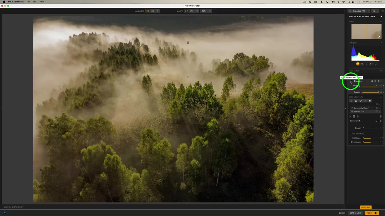 - Control Line을 사용하여 Luminance 및 Chrominance 슬라이더를 왼쪽으로 완전히 드래그하면 해당 영역에 대한 효과를 차단하여 안개를 다시 추가할 수 있다.