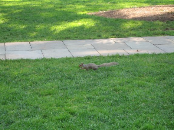 대학 잔디밭을 평온하게 뛰어다니는 다람쥐