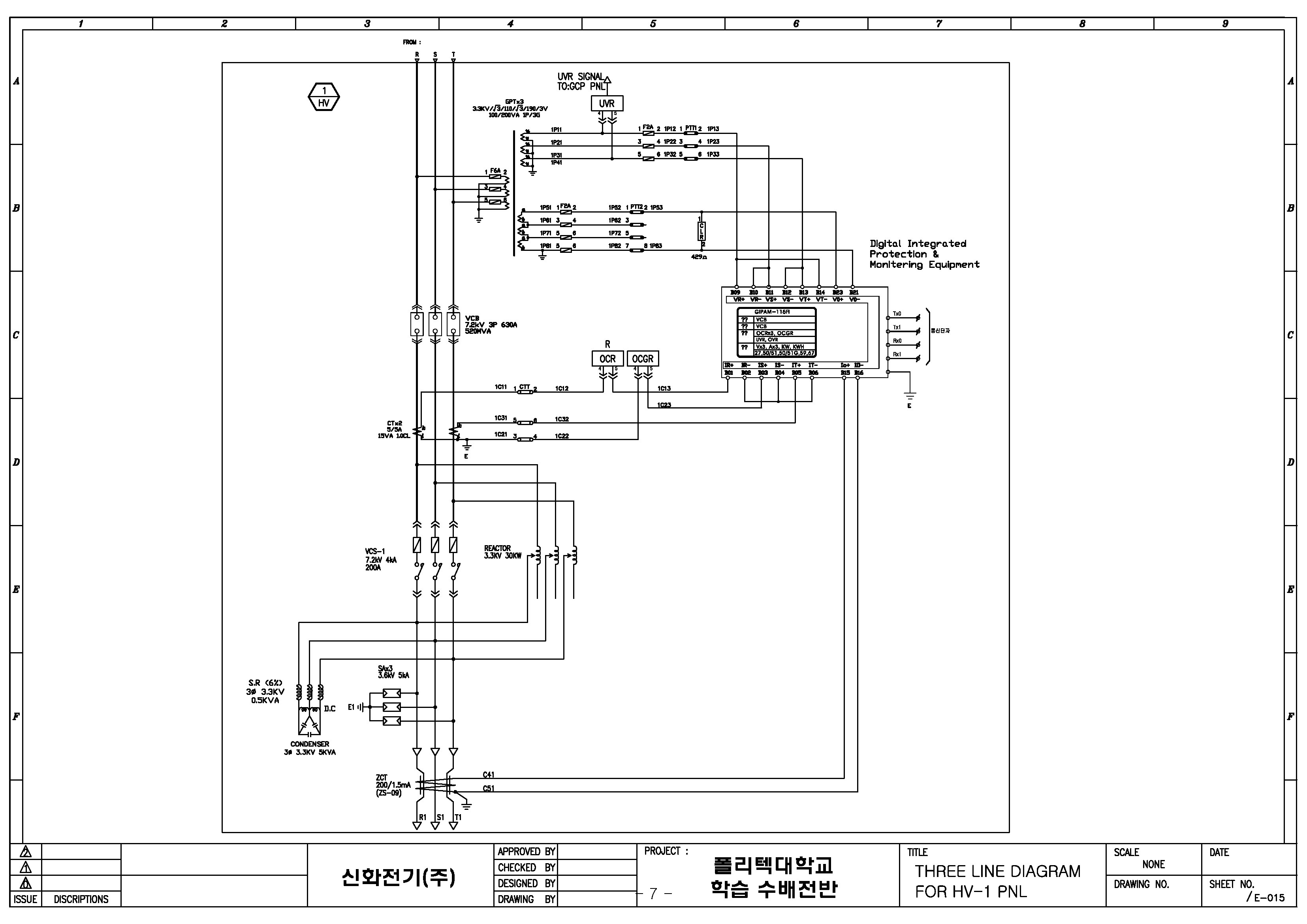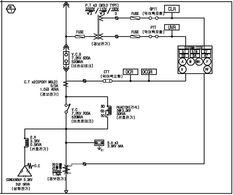 1. 도면상에 표기된 심벌(VCB, CT, VS, REACTOR, SA,SR,SC, ZCT, GPT, UVR, CLR,OCR.OCGR. GIPAM ) 과 실제 제품을 메칭시키고