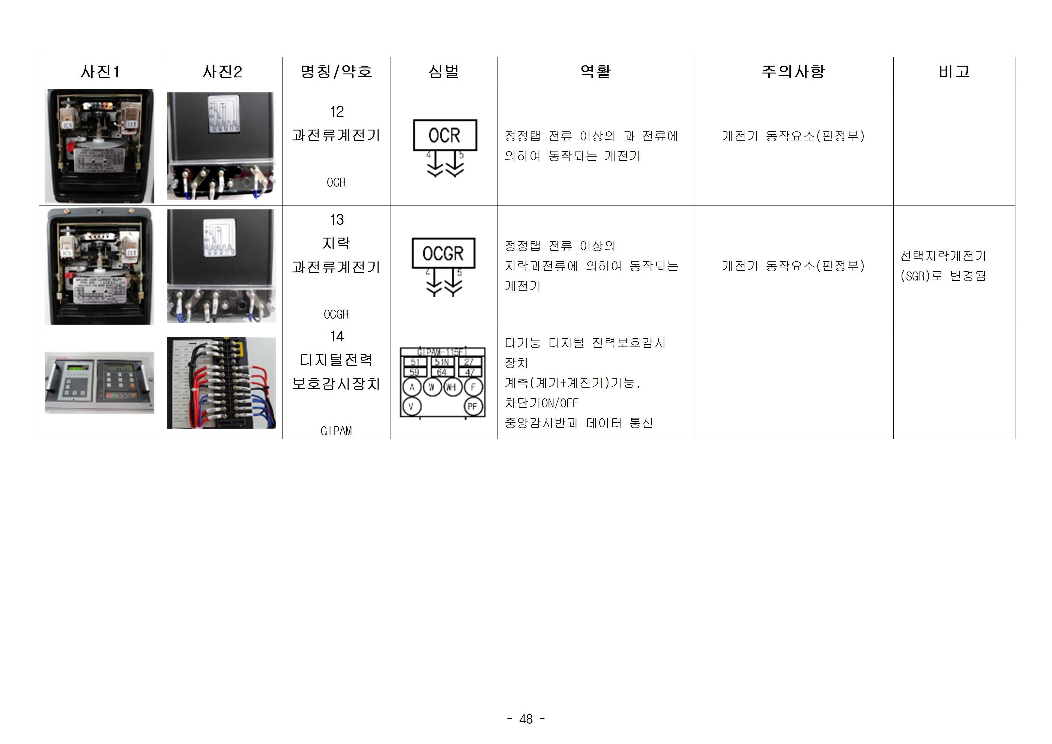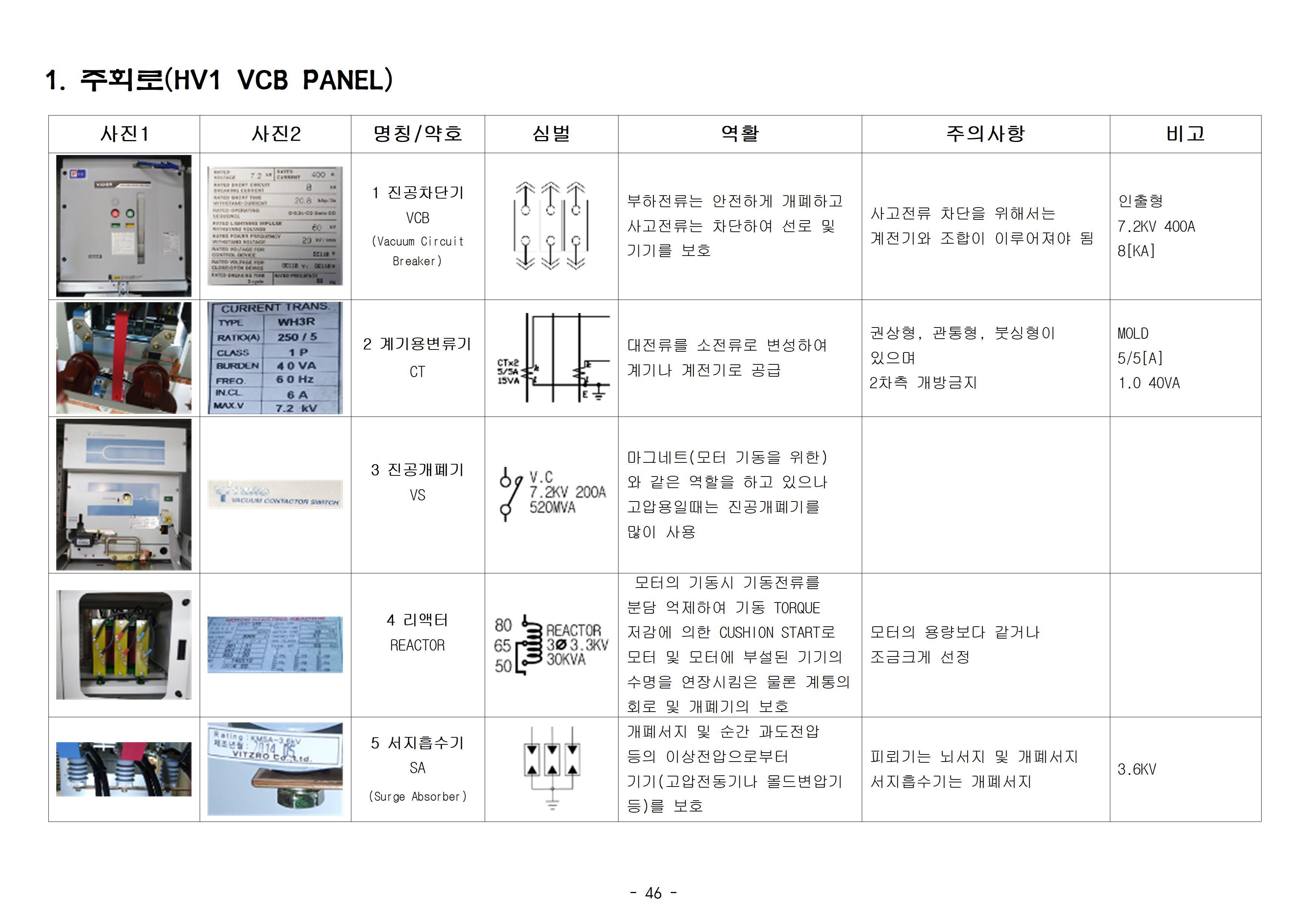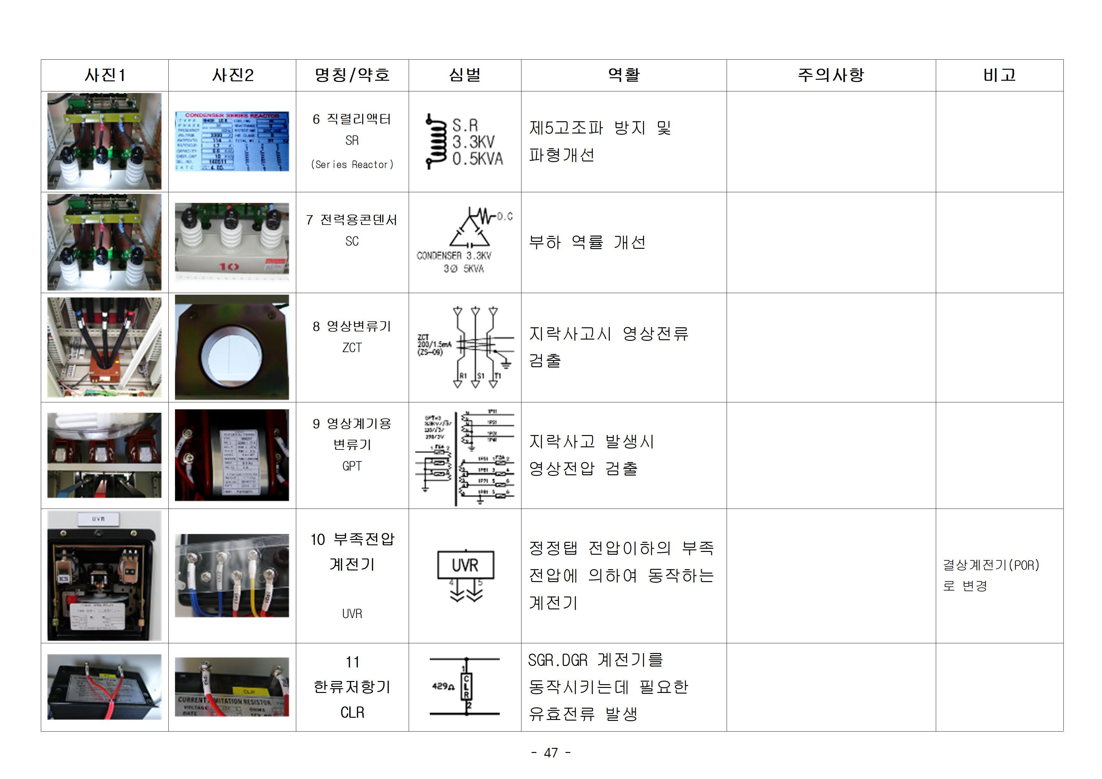 1. 도면상에 표기된 심벌(VCB, CT, VS, REACTOR, SA,SR,SC, ZCT, GPT, UVR, CLR,OCR.OCGR. GIPAM ) 과 실제 제품을 메칭