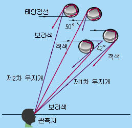 무지개는 태양의 반대쪽에서 관찰이 됩니다.