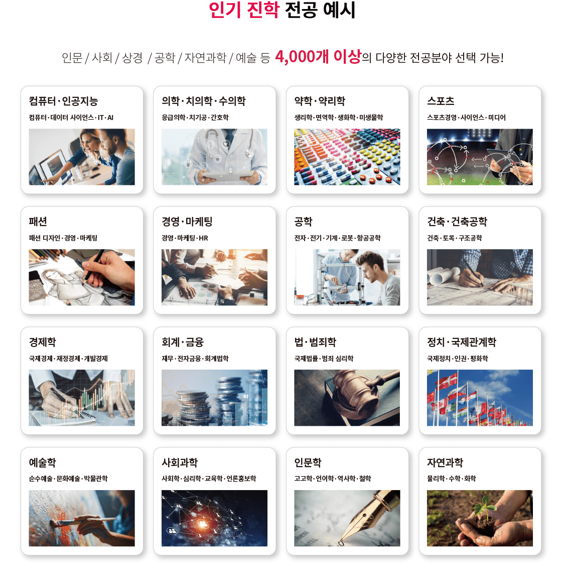 세계적으로 명성이 높은 상위권 영국대학교 인기 학과로 진학을 생각하고 있다면 해당 대학교들이 인정하는 파운데이션과정을 통해 대학교에 진학하는 것이 바람직 합니다. 공신력 있는 파운데이션 과정을 통해 입학하는 것이 안전하고 확실하게 영문 명문대학교에 진학할 수 있는 방법입니다.