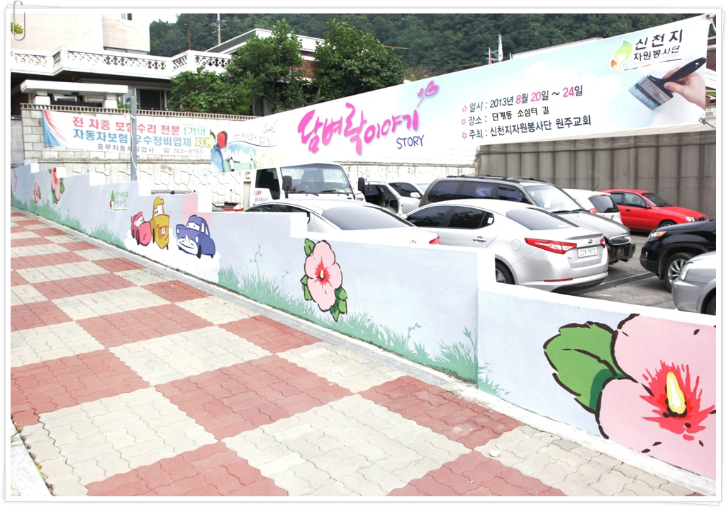신천지 원주교회 자원봉사단의 젊은 화가들이 붓을 들고 거리로 나섰습니다.