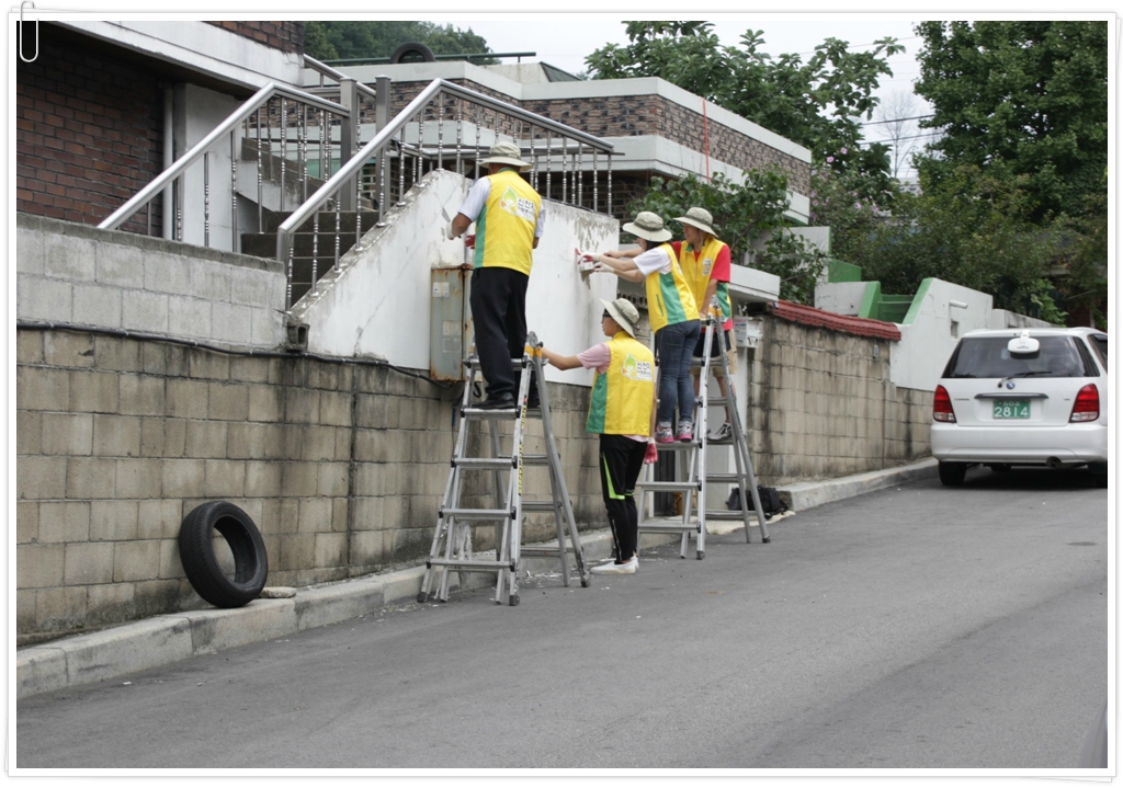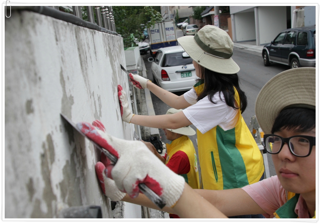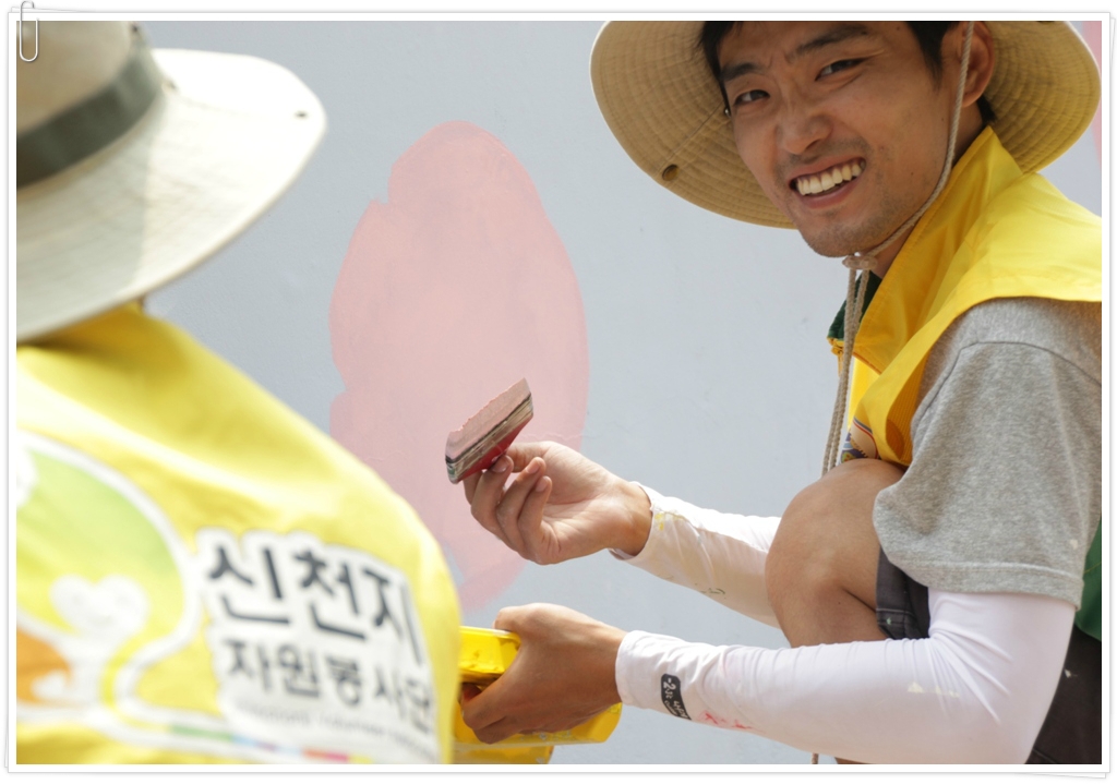 무채색의 담벼락을 살려내는 손끝에 정성과 사랑을 가득 담아