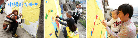 세월의 흔적이 많이 진 썰렁한 논골담길에 많은 미대생들이 고운 옷을 입혀주어