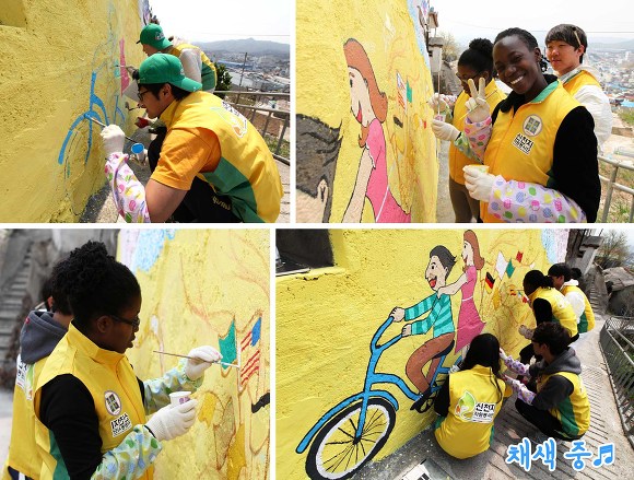 신천지 동해교회 봉사단과 외국인이 함께하는 담벼락 이야기